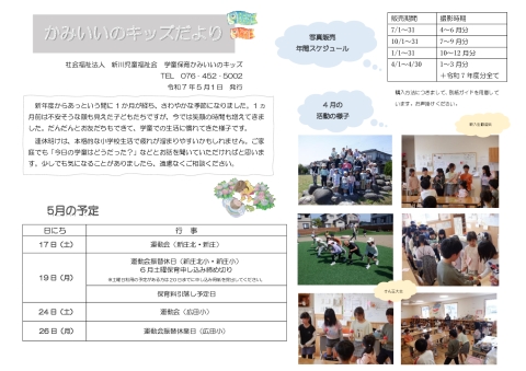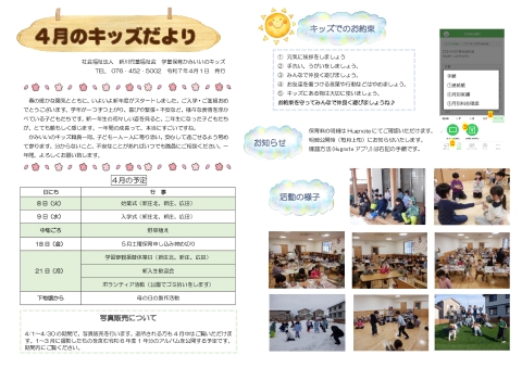 - お誕生日会など行事活動の日は時間や内容が変わります。